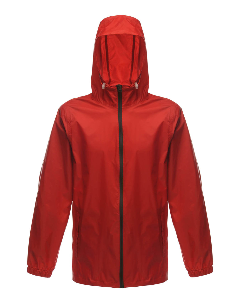 Waterproof Hydrafort lightweight polyester. Windproof fabric. Taped seams. Mesh lining to body and hood. Taffeta lining to sleeves. Integral hood. Adjustable shockcord hood. 2 lower pockets. Elasticated cuffs. Hook and loop fastening at hem for embroidery access. Inner zip guard.