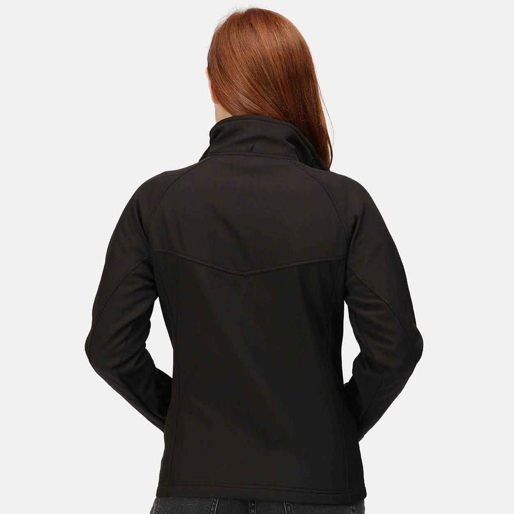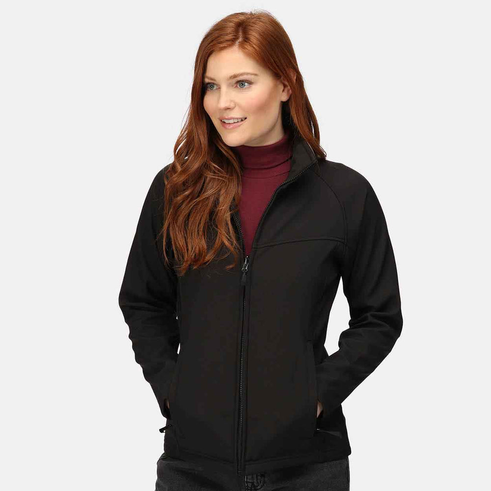 The TRA645 Uproar Softshell from Regatta Professional is interactive, features 2 zipped lower pockets, adjustable shockcord hem and is made using a quick drying, wind resistant warm backed woven stretch Softshell fabric with a durable water repellent finish, the Uproar Softshell has a super soft handle. The Uproar Softshell is lightweight and easy to wear and matches the men's Uproar Softshell (TRA642) but with a ladies shaped fit.
