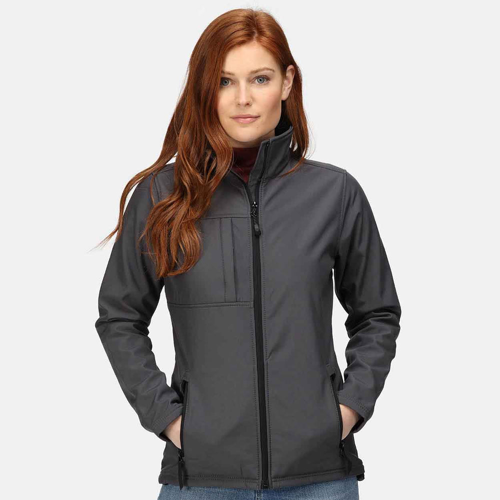 The Regatta Professional TRA689 Womens Octagon II features: • Warm-backed woven softshell XPT waterproof and breathable 3 layer membrane fabric • Fully printable fabric • 3 layer wind resistant membrane fabric • Inner zip guard with 2 zipped lower and 1 zipped chest pocket • Contains at least 30% recycled materials