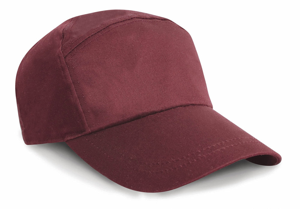 7 Panel. Full profile. Pre-curved peak with 2 stitch lines. Wide front supported panel. No centre seam. Stitched eyelets. Snap closing size adjuster. Decoration Guidelines: Decorating methods: Embroidery & Transfer print Decorators access point: Open Washing Instructions Sponge clean only, do not bleach, do not iron, do not dry clean, do not tumble dry.