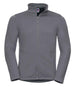 Russell Smart Softshell Jacket. Two layer soft shell. Fabric consists of woven surface bonded with micro fleece layer. Teflon coated. Breathable and wind resistant. Taped neck. Full length reverse tape zip. Two front zip pockets. Open cuffs and hem. Drop tail. 100% polyester.