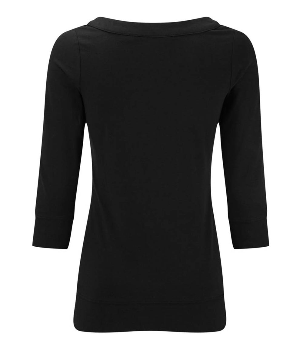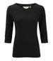 The Russell Collection 992F Ladies 3/4 Sleeve Stretch Top in 93% combed cotton/7% elastane. Scoop neck. Shaped side seams. Double layer hidden support. Double layer fabric on neck, cuffs and waistband. The Russell Collection 992F Ladies 3/4 Sleeve Stretch Top features fabric weight: White 215 gsm, Black 220 gsm.