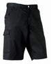 The 002M Russell Workwear Short features 65% polyester/ 35% cotton twill fabric. Two side pockets. Two rear pockets with flaps. Cargo pocket on right leg. Mobile phone pocket. Fabric Weight: 245 gsm