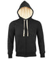 SOL'S Unisex Sherpa Hooded Jacket Material: 80% cotton/20% polyester. 100% polyester cream sherpa lined body and hood. Cream drawcord. Full length covered zip. Front pouch pockets. Deep ribbed cuffs and hem. Weight: 280 gsm