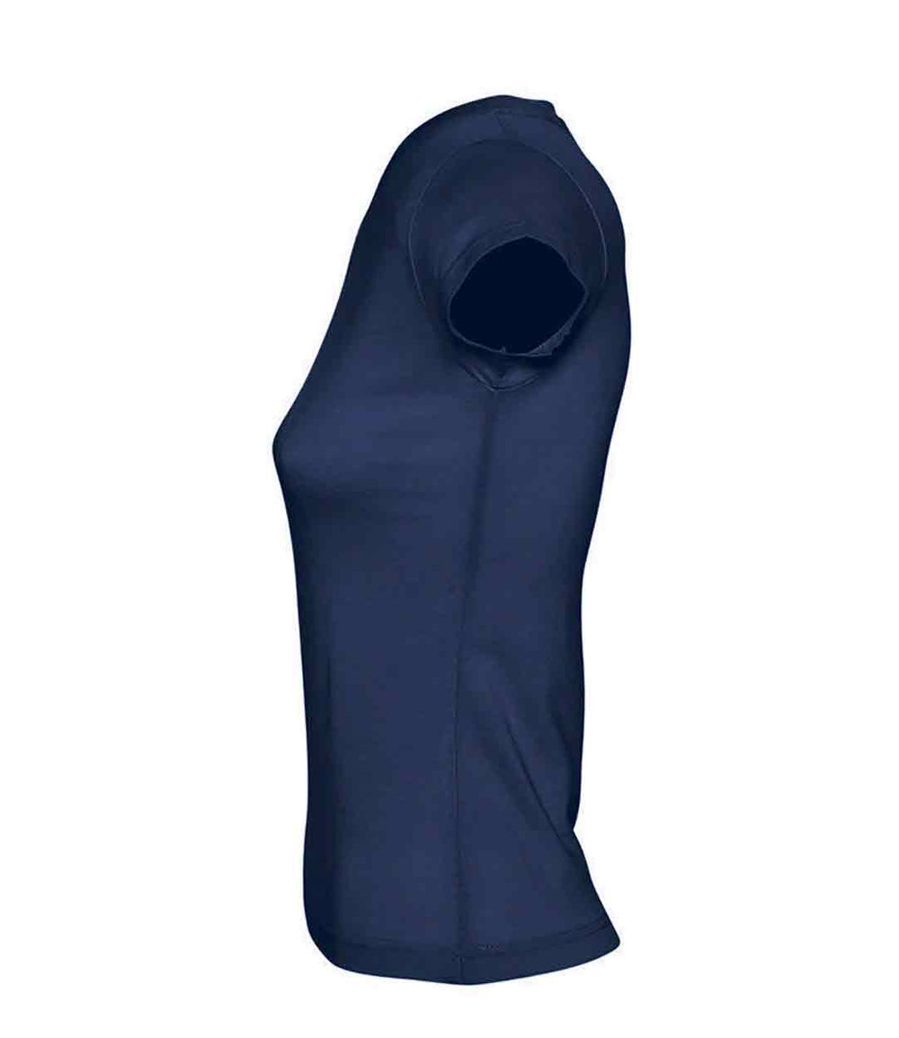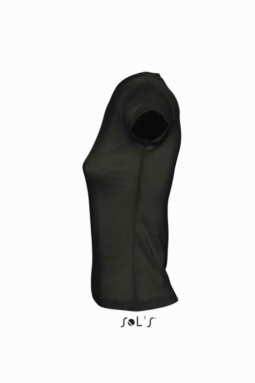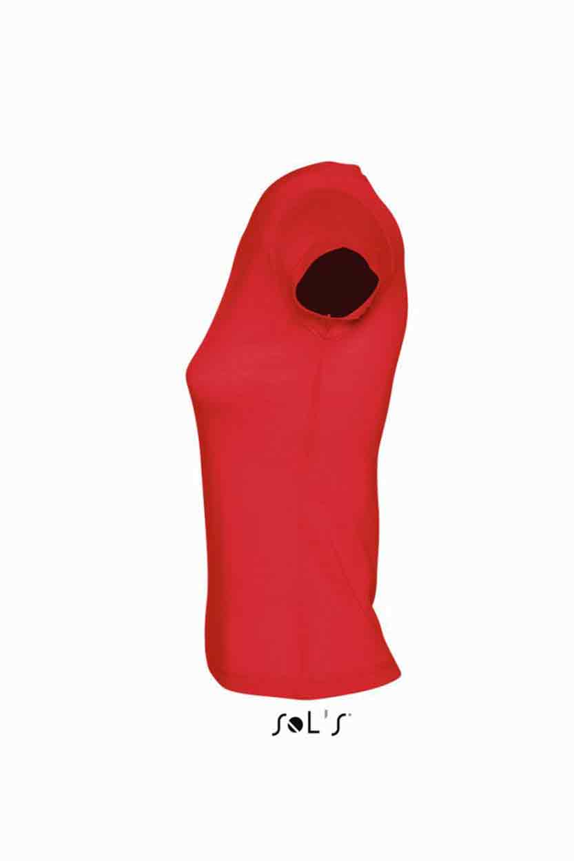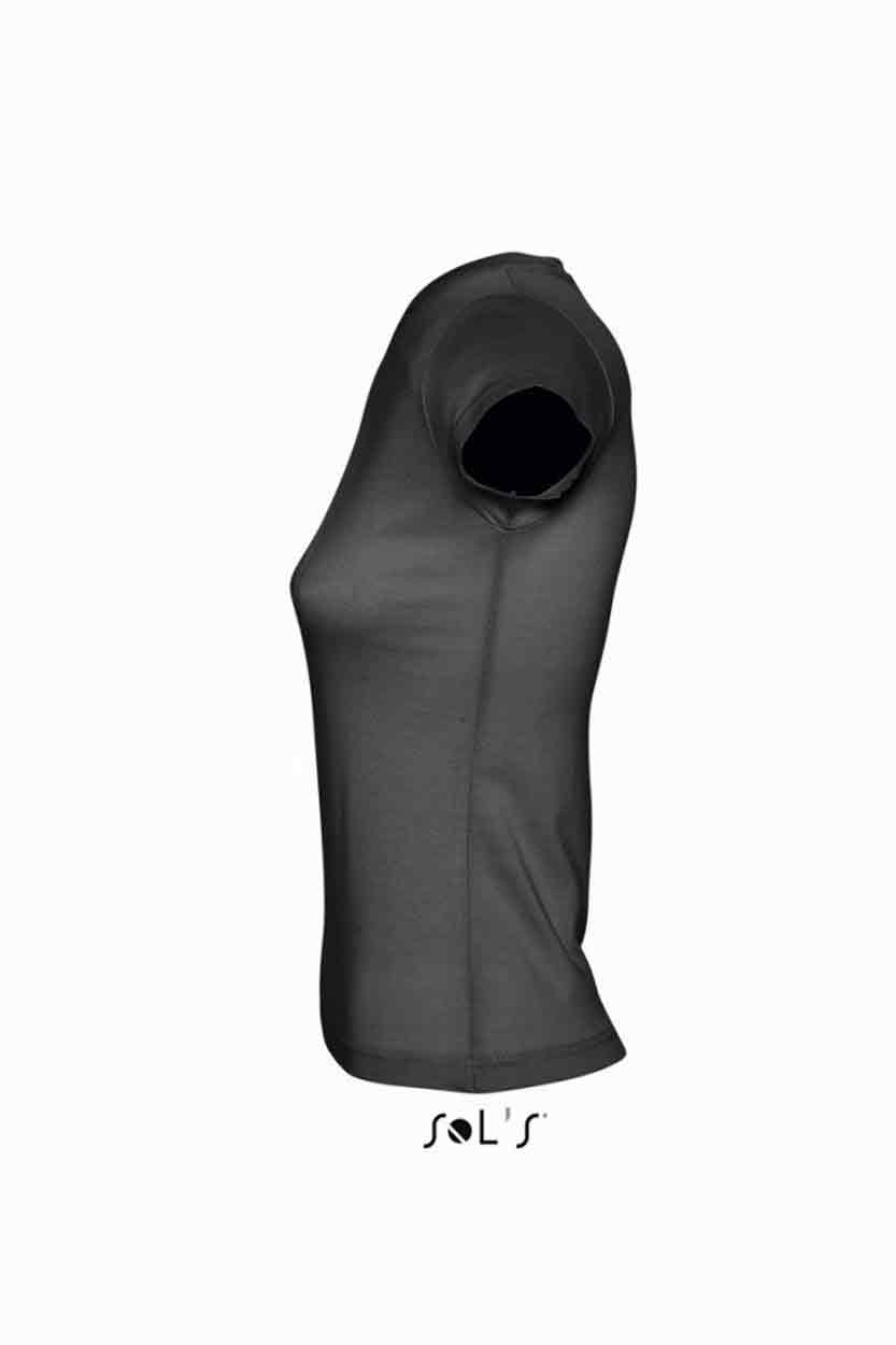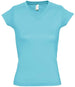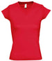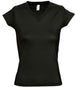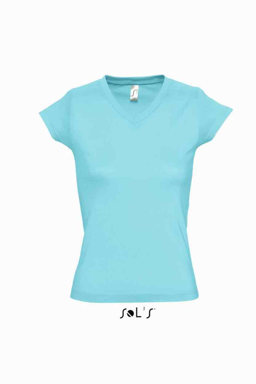 SOL'S Ladies Moon V Neck T-Shirt Material: 100% ring spun semi-combed cotton. Fitted cut with side seams. Taped back neck. Ribbed v neck. Twin needle cap sleeves and hem. Weight: 150 gsm