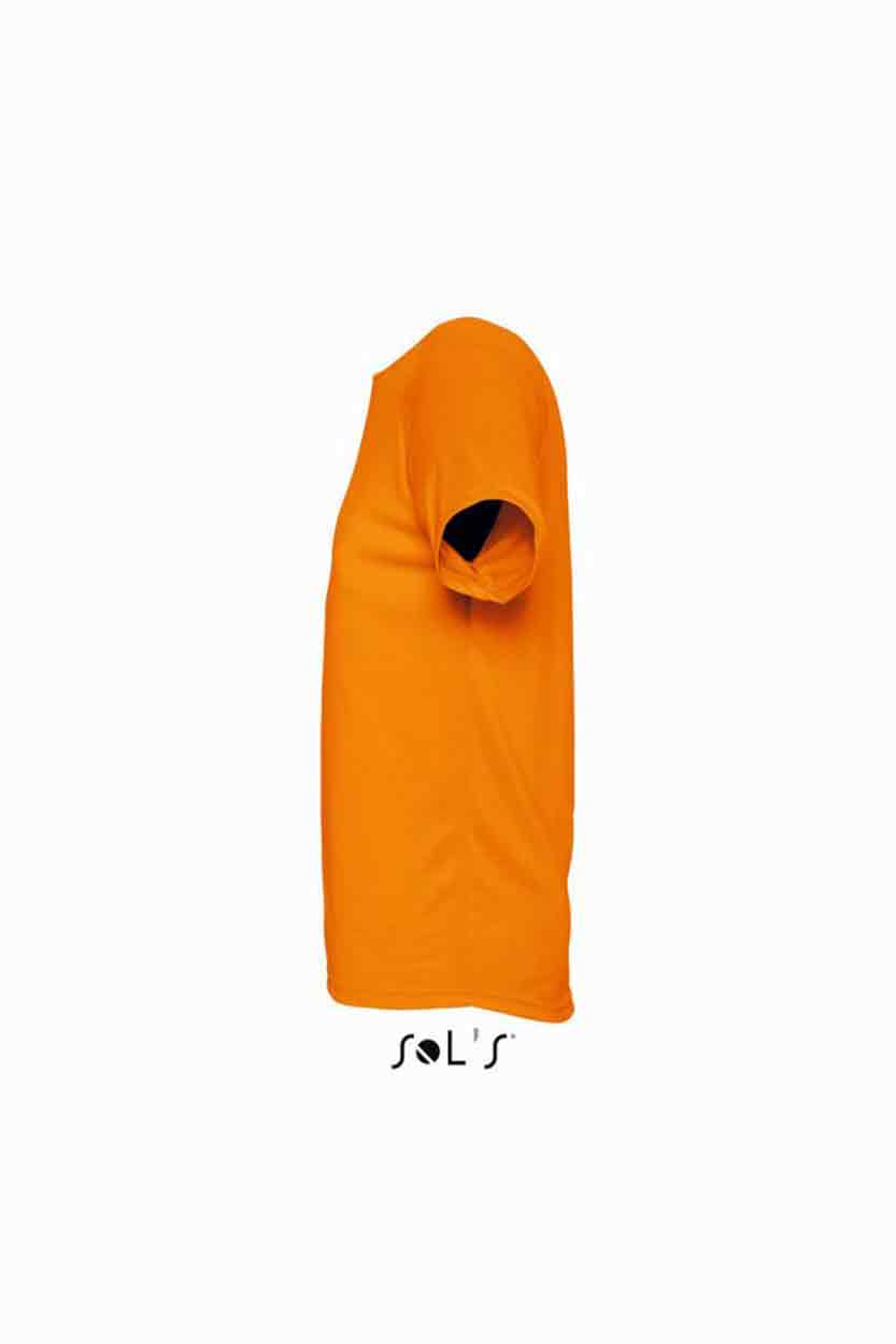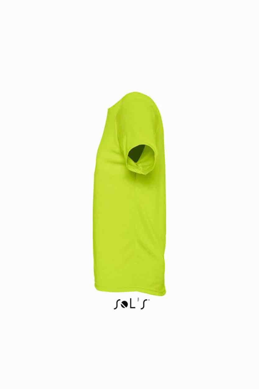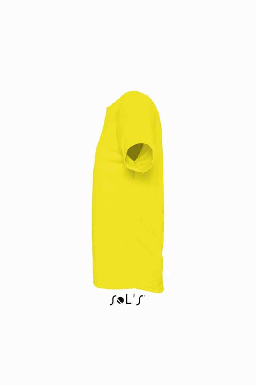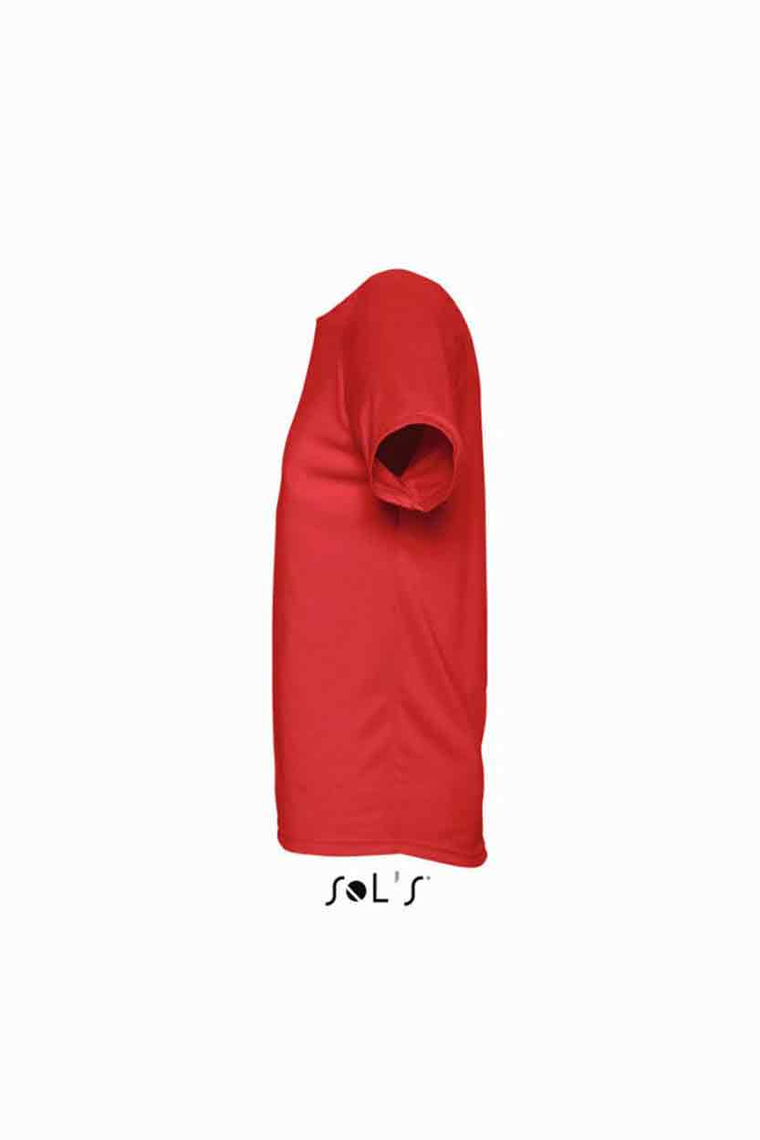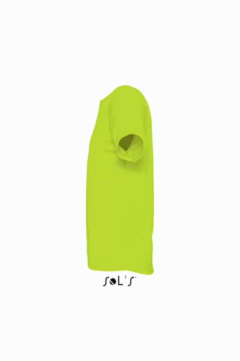 SOL'S Sporty Performance T-Shirt Material: 100% polyester. Textured, breathable fabric. Self fabric bound collar. Raglan sleeves. Twin needle sleeves and hem. Drop tail. Weight: 140 gsm