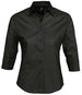 SOL'S Ladies Effect 3/4 Sleeve Fitted Shirt Material: 97% cotton/3% elastane. Stretch fabric. Stiffened collar. Self colour buttons. Slitted cuffs. Front and back darts. Curved hem. Available in long sleeve 17015 and short sleeve 17020.