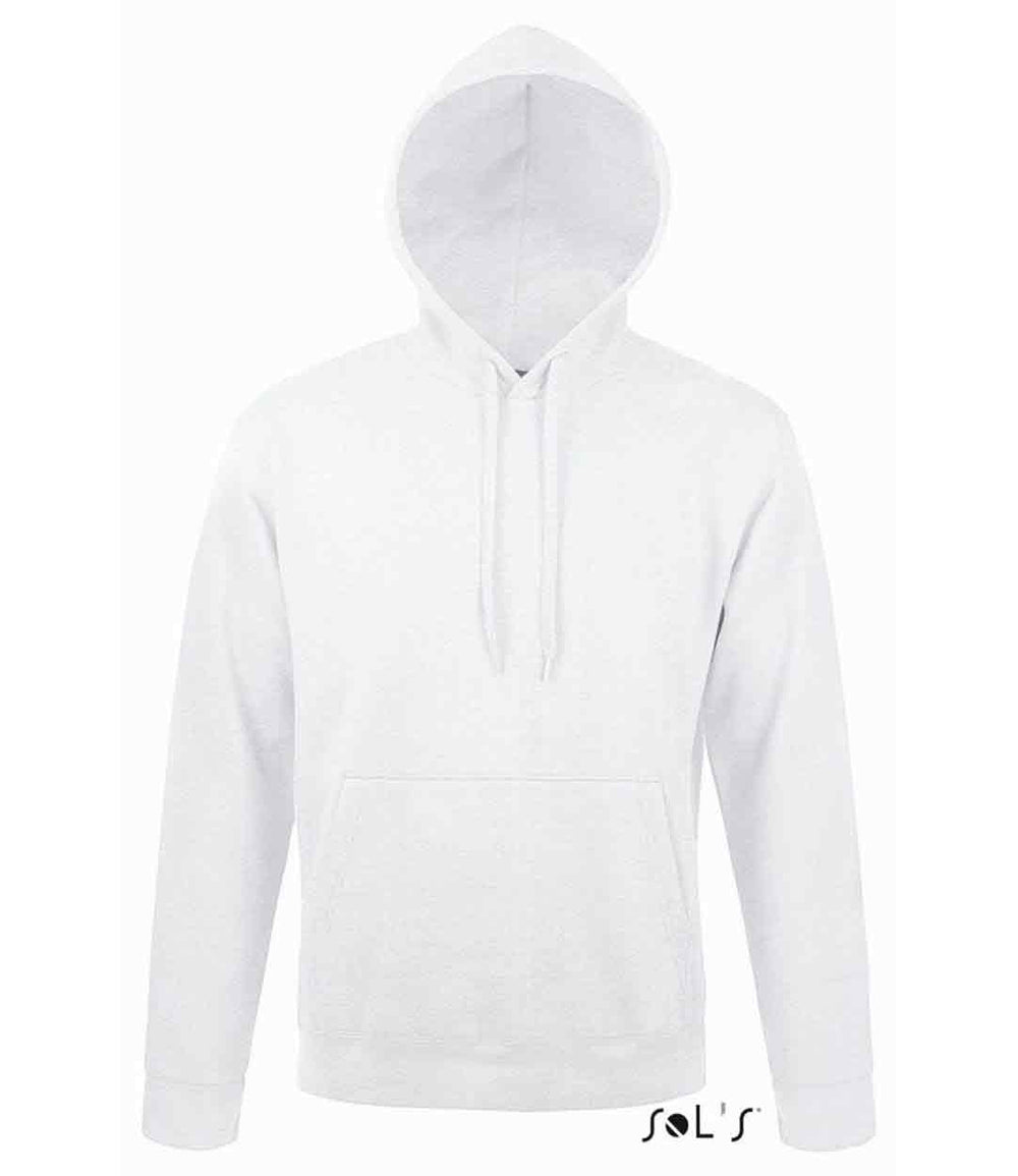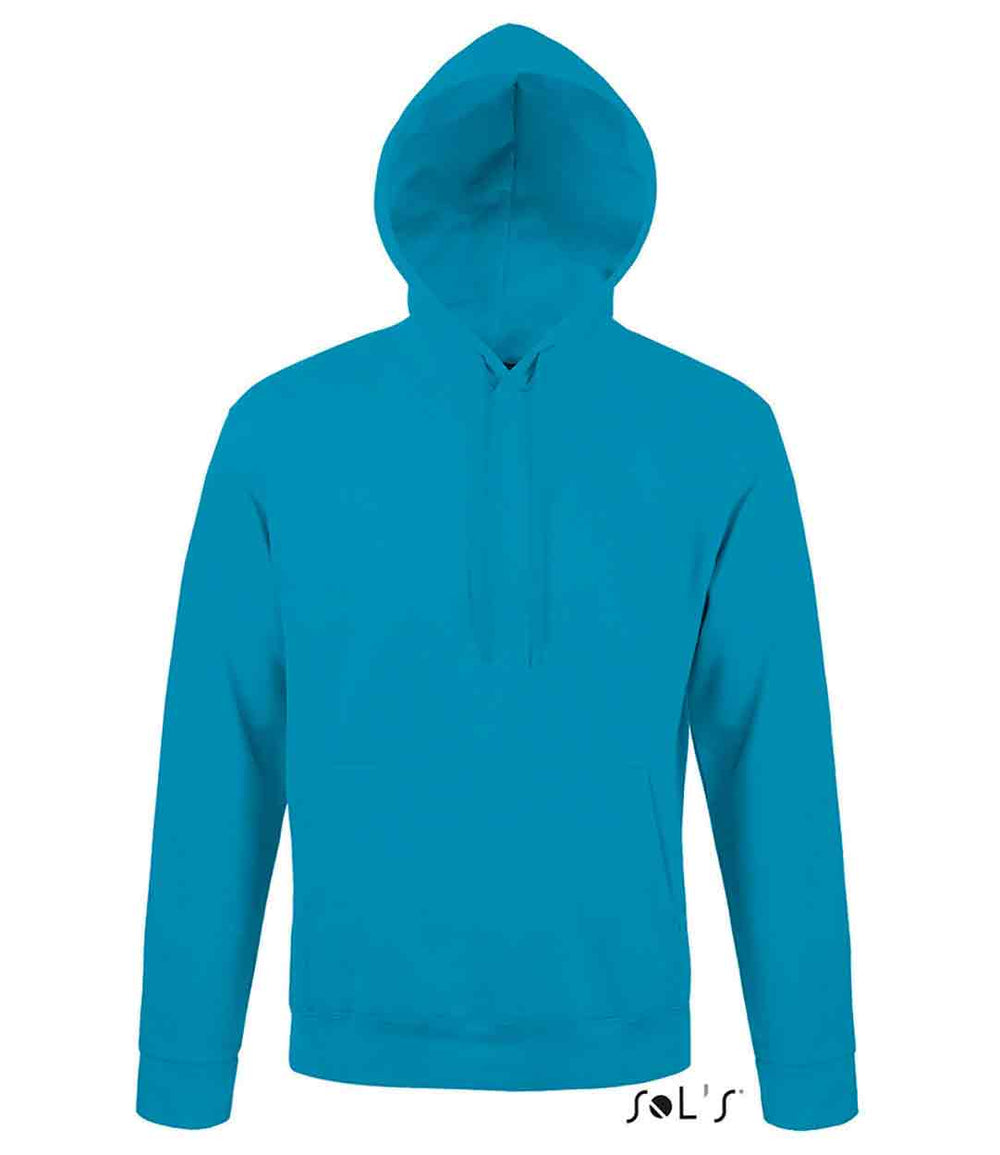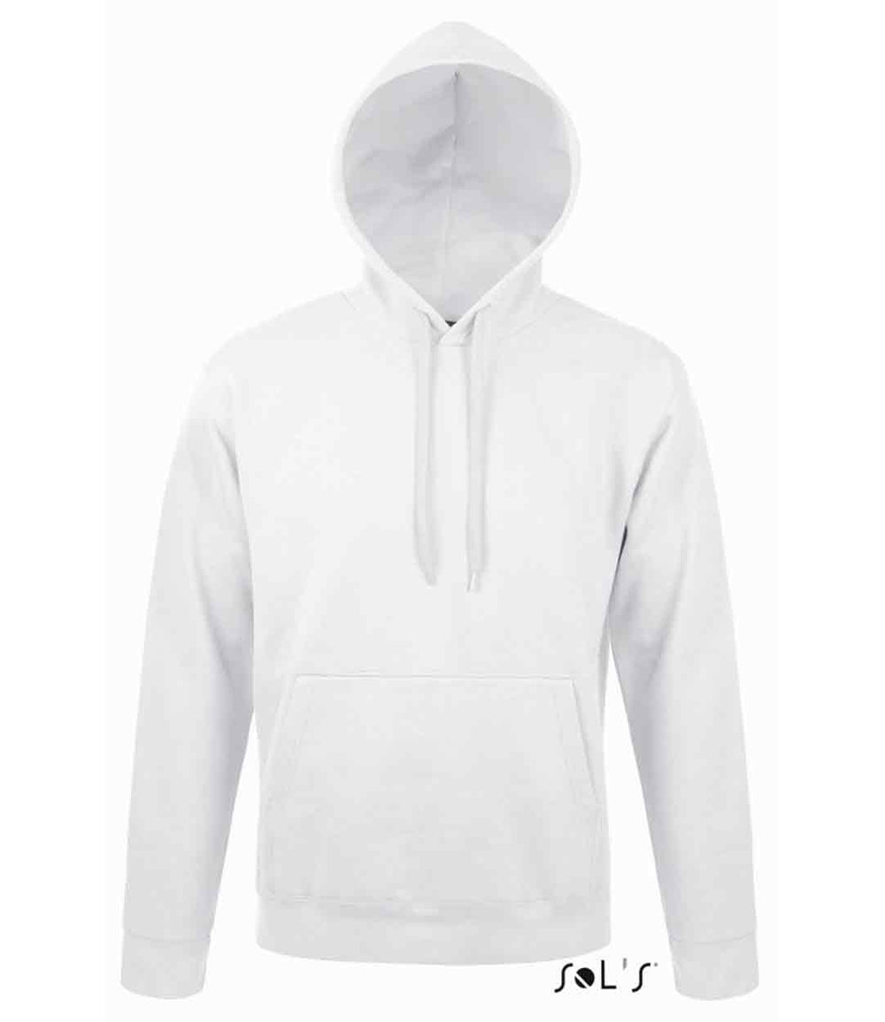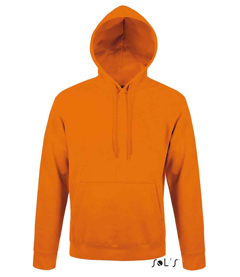 SOL'S Snake Unisex Hooded Sweatshirt Material: 50% cotton/50% polyester. Brushed fleece backing. Drop shoulder style. Lined hood with flat self colour drawcord. Front pouch pocket. Elastane ribbed cuffs and hem. Twin needle stitching. Weight: 280 gsm