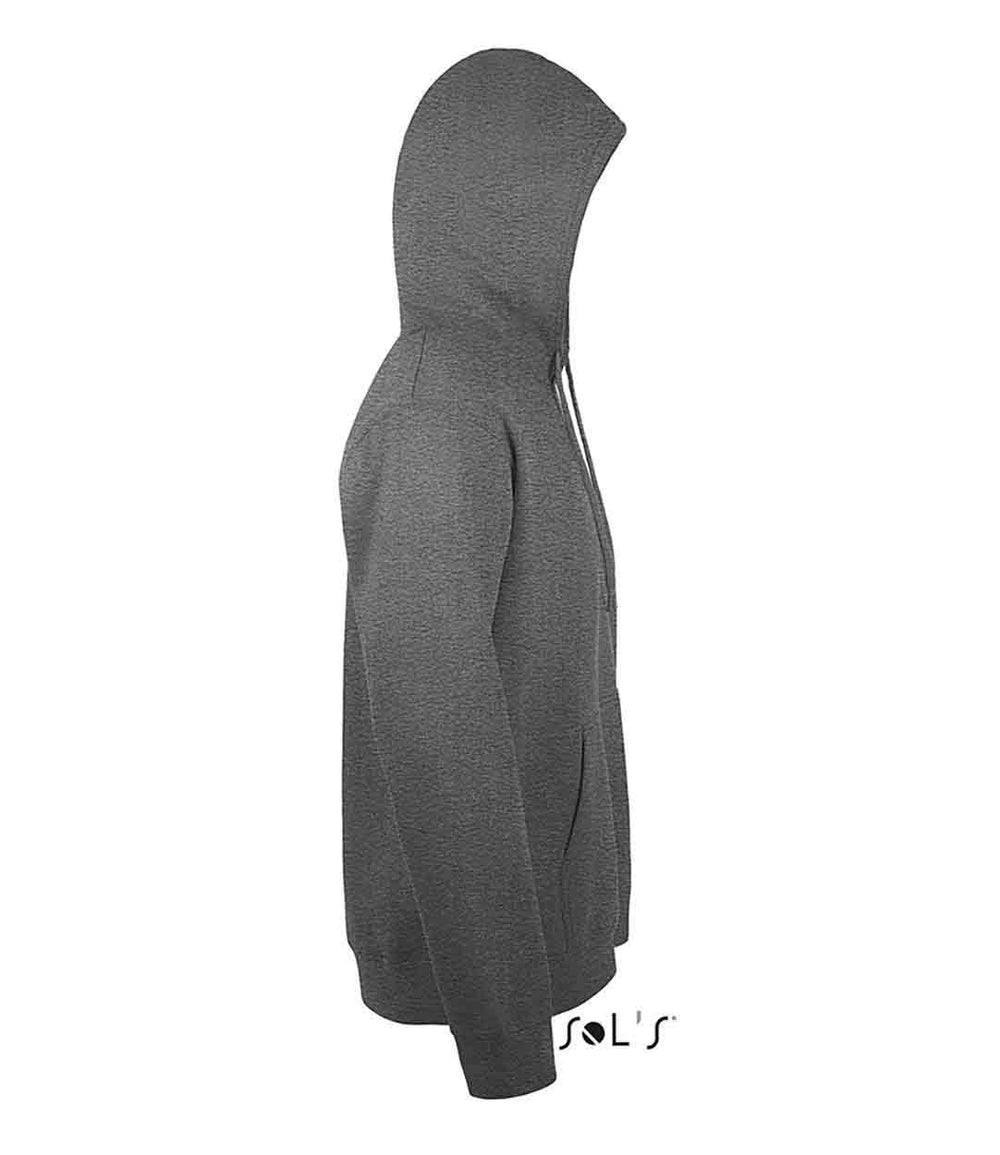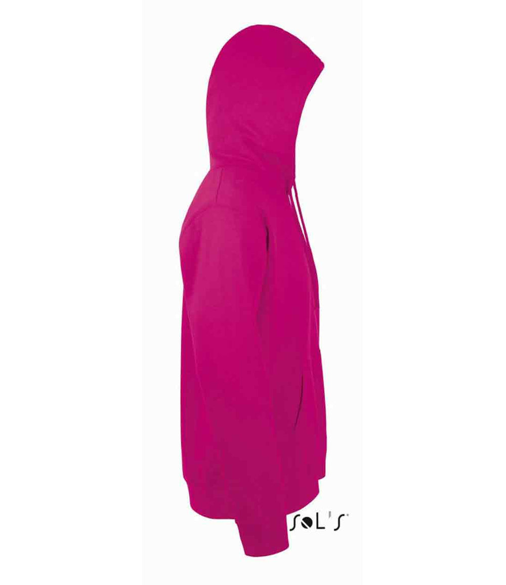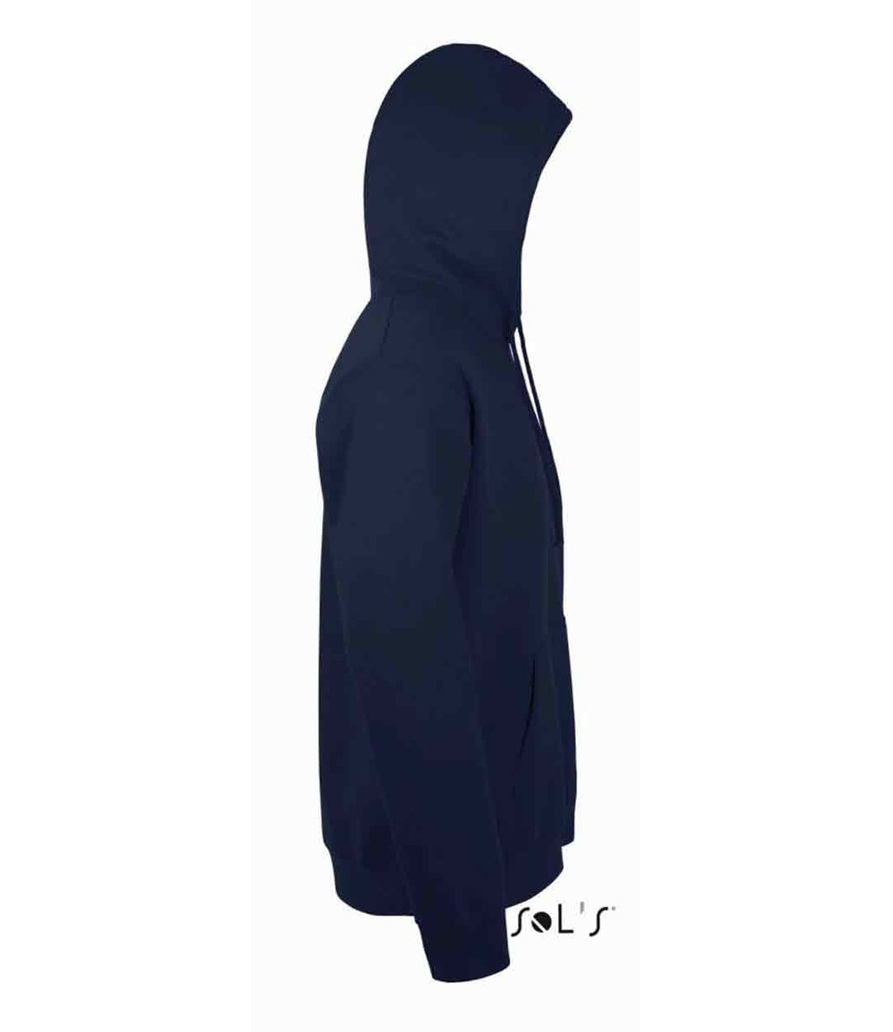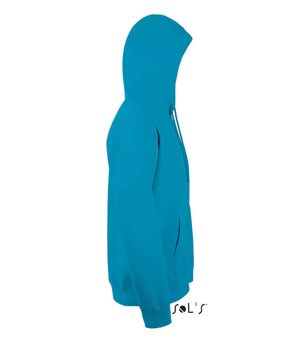 SOL'S Snake Unisex Hooded Sweatshirt Material: 50% cotton/50% polyester. Brushed fleece backing. Drop shoulder style. Lined hood with flat self colour drawcord. Front pouch pocket. Elastane ribbed cuffs and hem. Twin needle stitching. Weight: 280 gsm