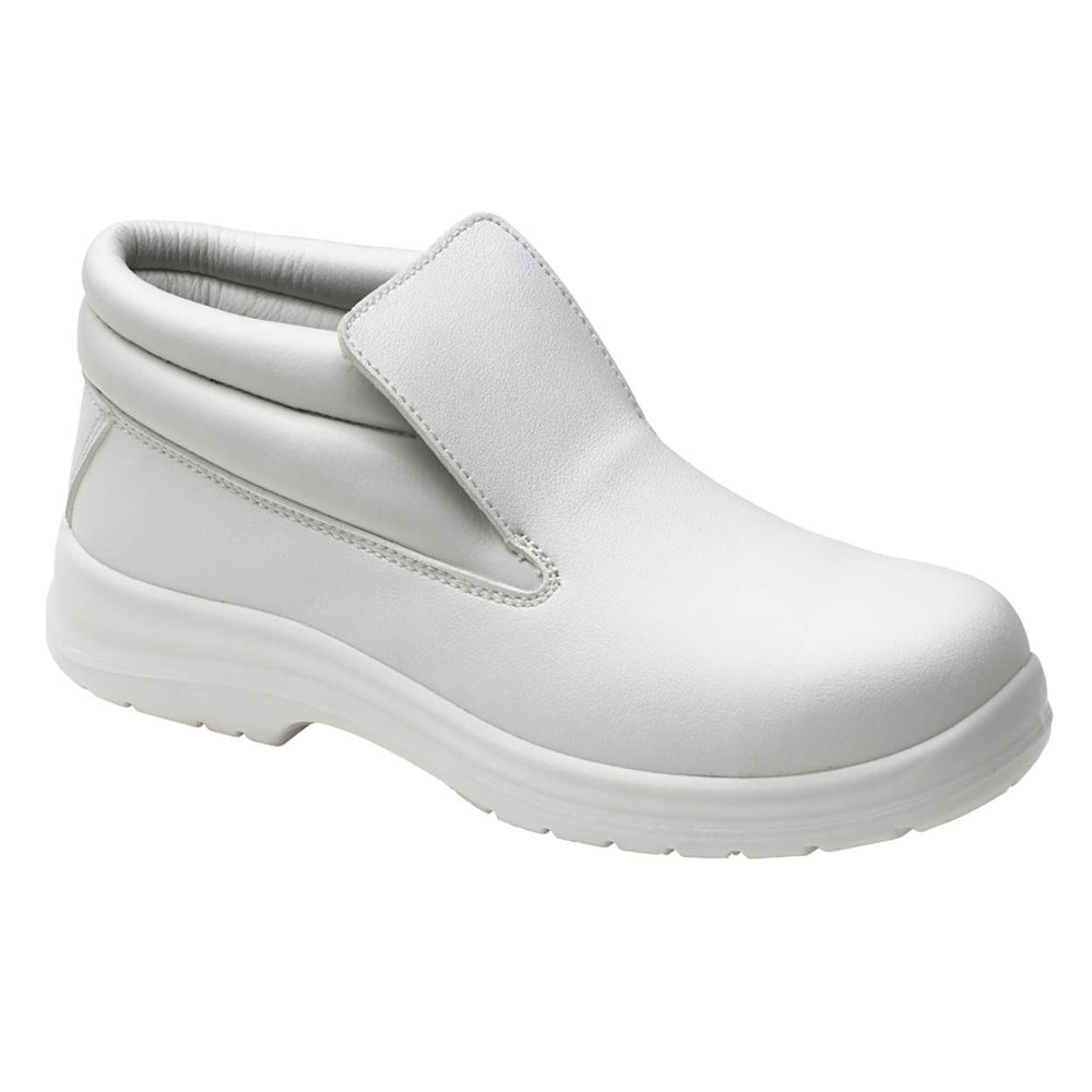This lightweight minimal design all white padded ankle boot is a great choice for all day support and comfort. It has breathable liner with a steel toe cap to keep you protected at all times. Perfect for use in a variety of environments especially where hygiene and cleanliness are of upmost importance.