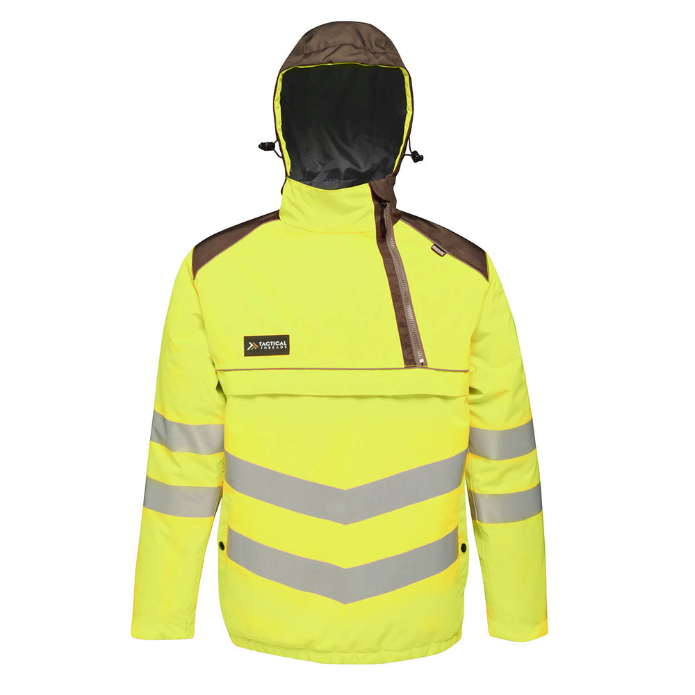 This bomber is perfect for the building site. We’ve used our ID Reflection Technology to provide safety from all angles. The overhead hoodie design with a half-length zip ensures you’re on full show at all times., Fabric Information, Waterproof and breathable Isotex 10000 100% polyester oxford 300D fabric, Conforms to EN343 Class 3:2, Windproof fabric, Thermo-Guard insulation, Taped seams, Conforms to EN ISO 20471:2013 +A1:2016 Class 2, Side zip access for easy overhead entry, 2 lower pockets, Elasticated hem, Half length zip with inner zip and chin guard, Grown on polyester lined hood with drawcord adjuster, Orange colour-way also conforms to RIS-3279/TOM