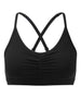 Medium-impact sports bra. Elasticated under bust for added support. Ruched detailing to centre front. Cross back straps with adjusters. Removable padding inner. Panel detailing to back with mesh detail centre. BSCI certified. SEDEX certified. WRAP certified.